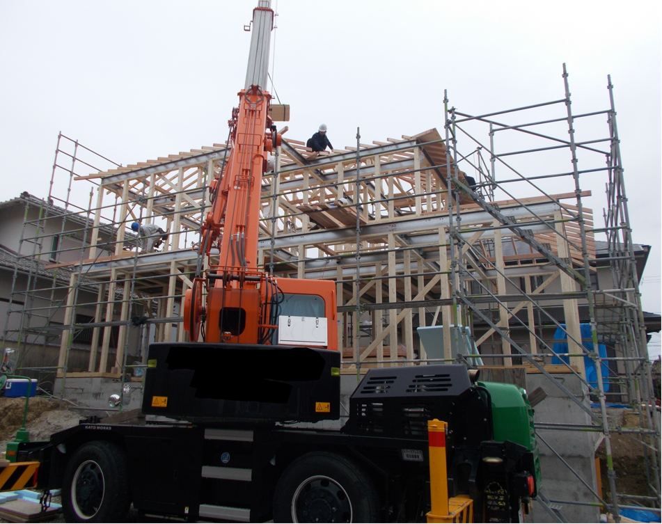 先日、広陵町5丁目が上棟致しました(^.^) 10時ごろに見にいくと おぉ!!一階部分が出来てる!! 横になってい...