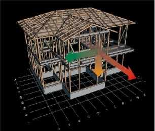木と鉄の複合梁「テクノビーム」を使用したパナソニック独自の耐震工法。梁の強度が増し、耐震性が高まります。